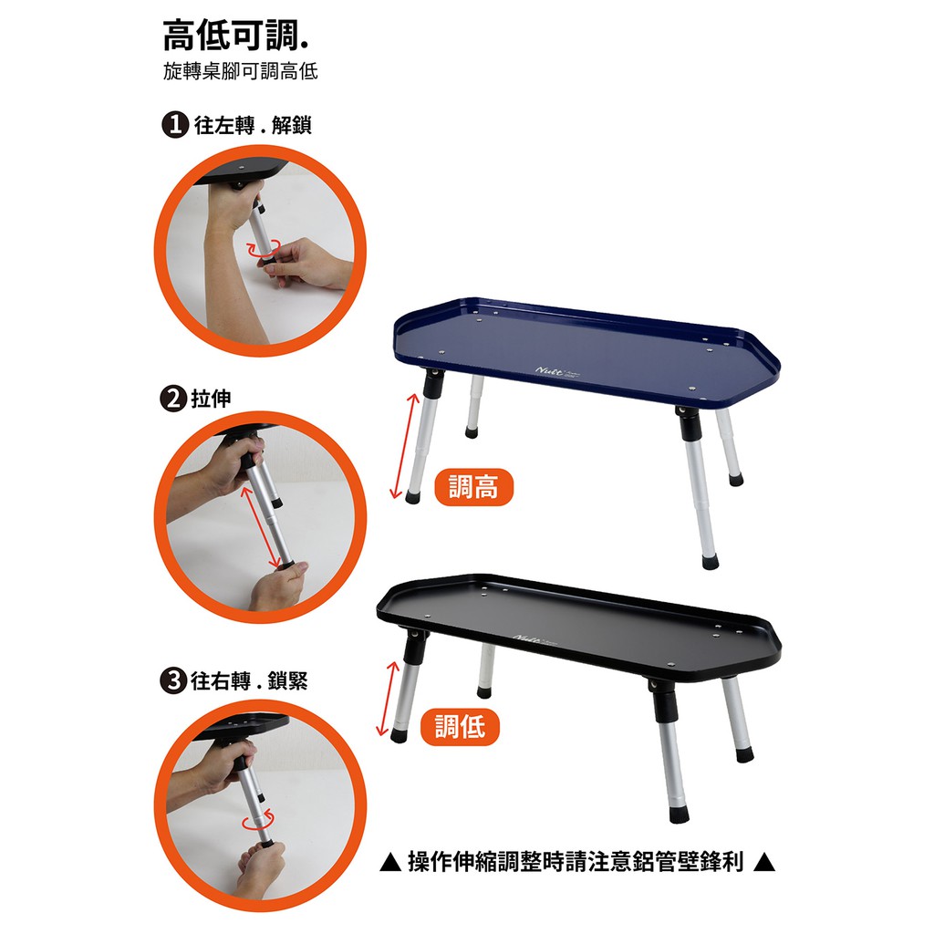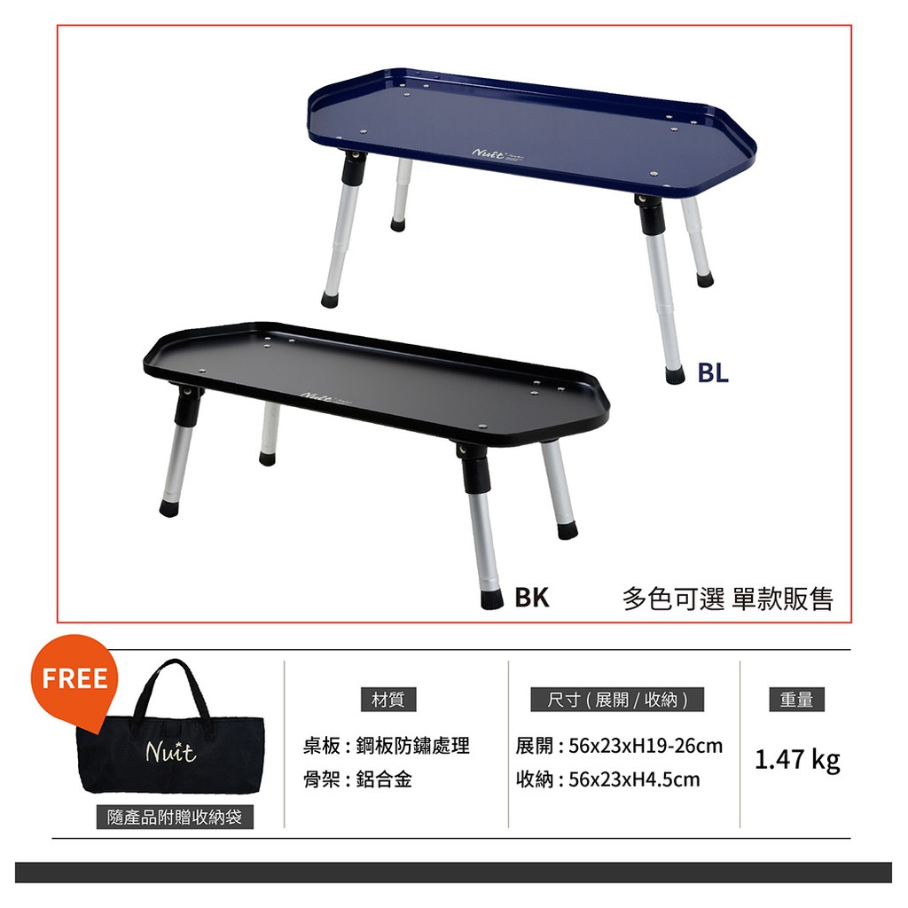 【努特NUIT】NTT80 跑酷滑板桌 黑 藍 兩色 高低可調 燒烤小邊桌 料理台 摺疊桌小桌折 疊露營桌 摺合桌