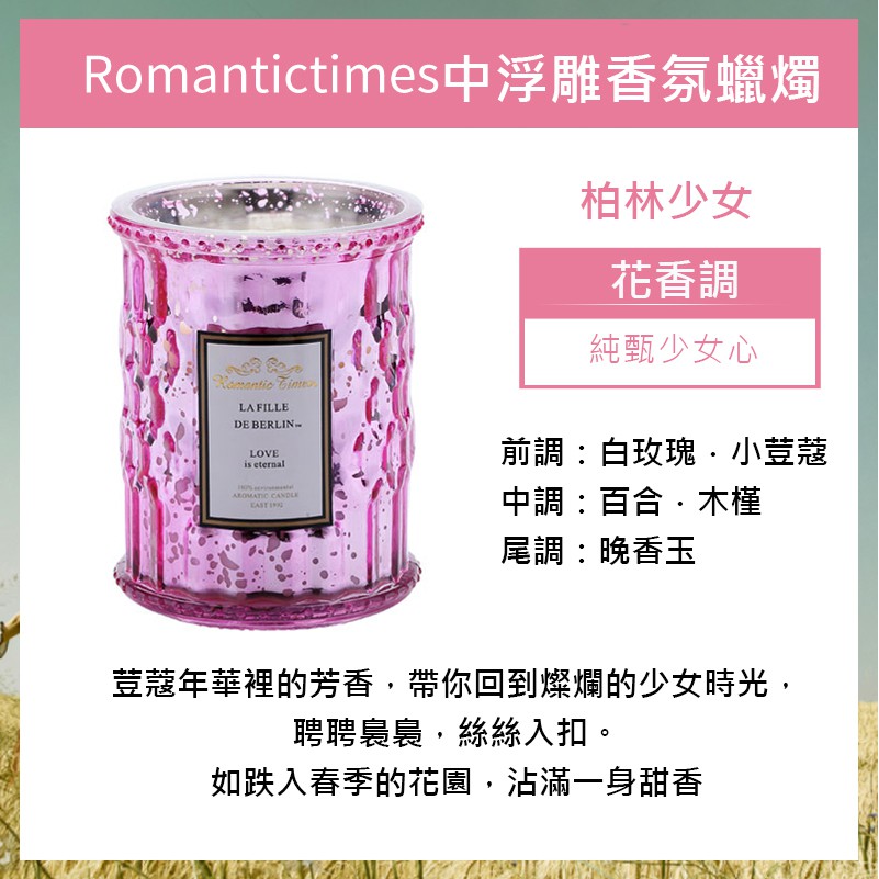 【ROMANTIC TIMES】浪漫時光中浮雕香氛蠟燭/燭光/送禮/火柴/交換禮物/椰子油蠟燭/大容量蠟燭/純植物精油