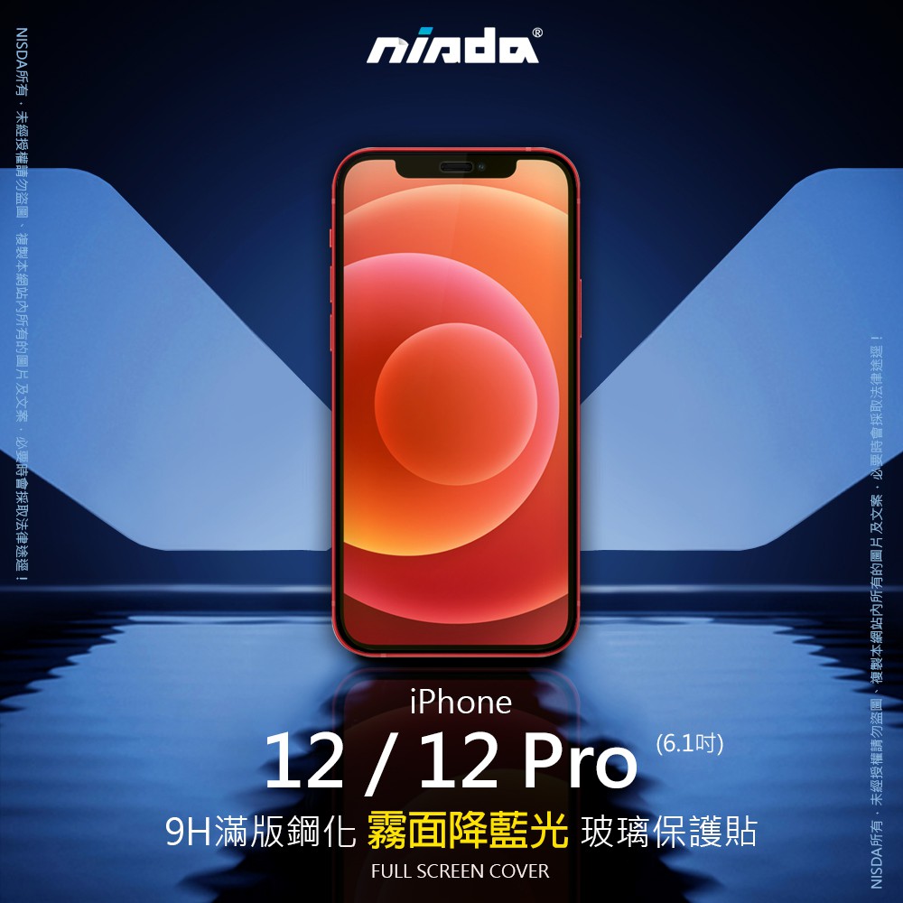 【NISDA】Apple iPhone 12 / 12 Pro「霧面降藍光」滿版玻璃保護貼 (6.1")