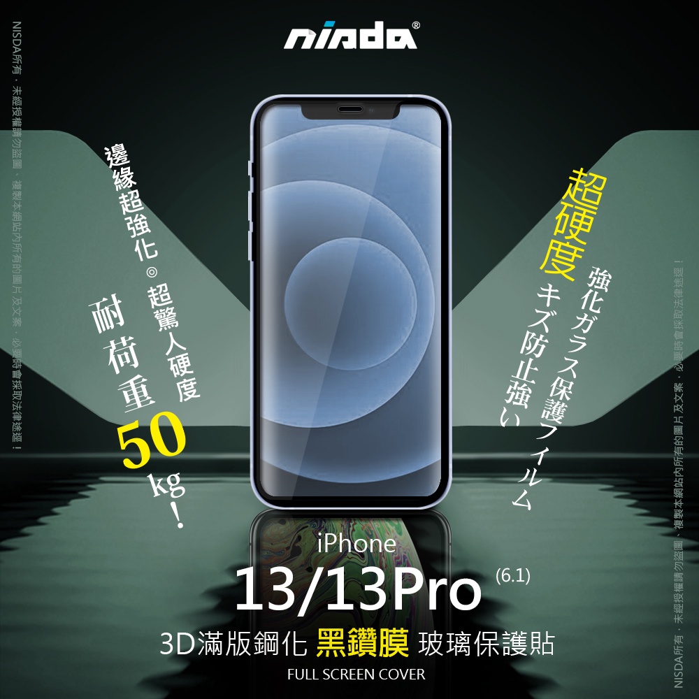 【NISDA】Apple iPhone 13 / 13 Pro「黑鑽膜」2.5D滿版玻璃保護貼 (6.1")