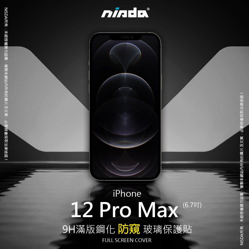 【NISDA】Apple iPhone 12 Pro Max「防窺」滿版玻璃保護貼 (6.7")