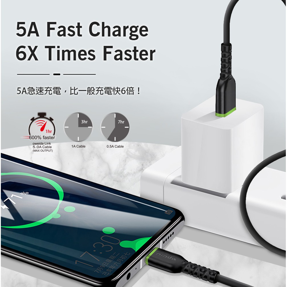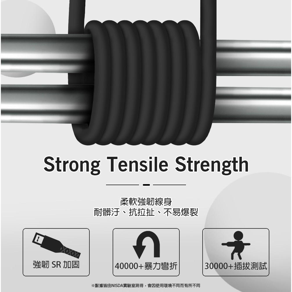 【NISDA】5A韌系列 USB-Type-C TPE 耐折線 (白色) 200cm / 120cm / 30cm