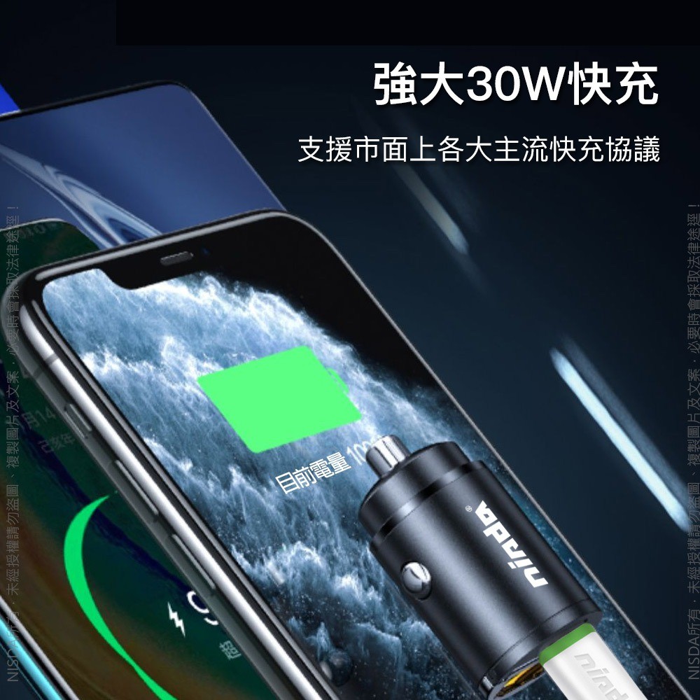 【NISDA】SUPERmini 30W PD+QC 雙孔認證車用充電器