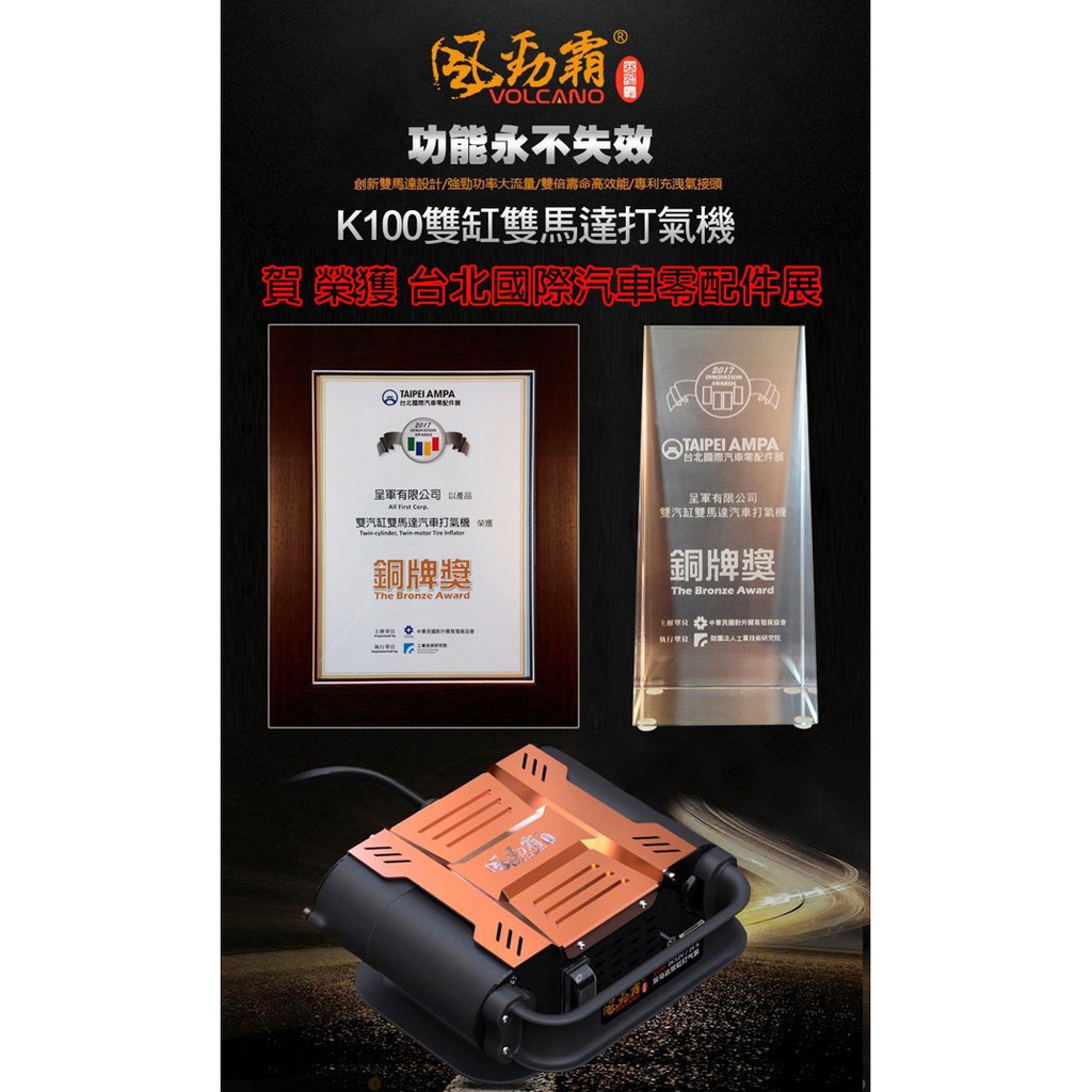VOLCANO 悍馬大力士 雙缸雙馬達電動打氣機 K100