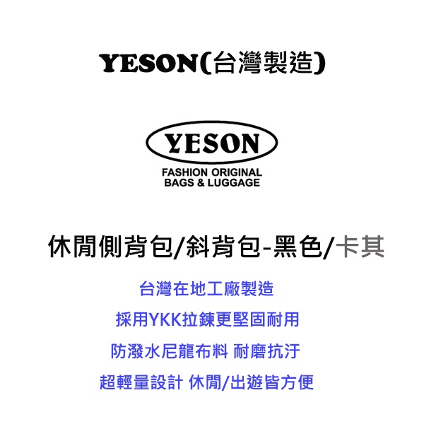 【YESON】休閒側背包/斜背包(黑色/卡其)