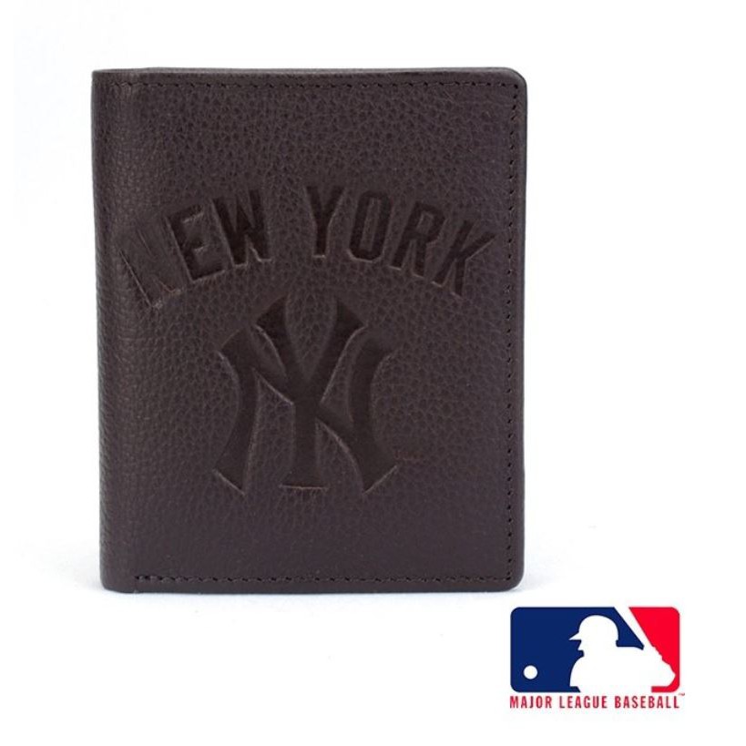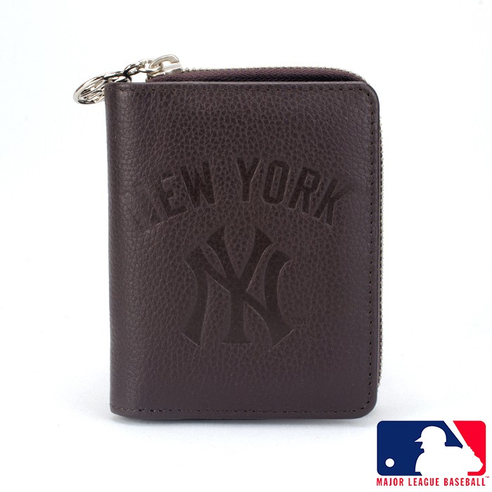MLB美國大聯盟 洋基牛皮皮夾 黑色/咖啡色_背包族