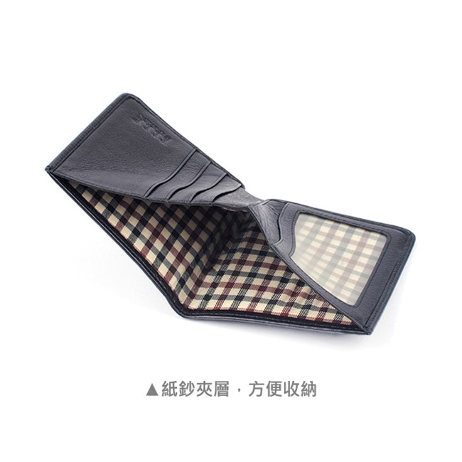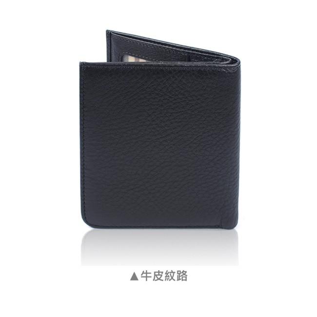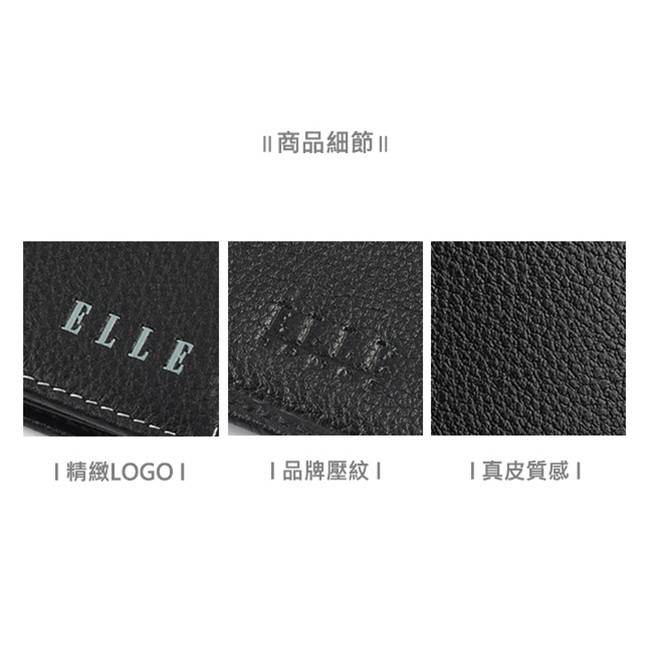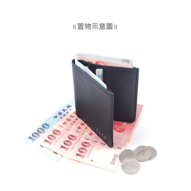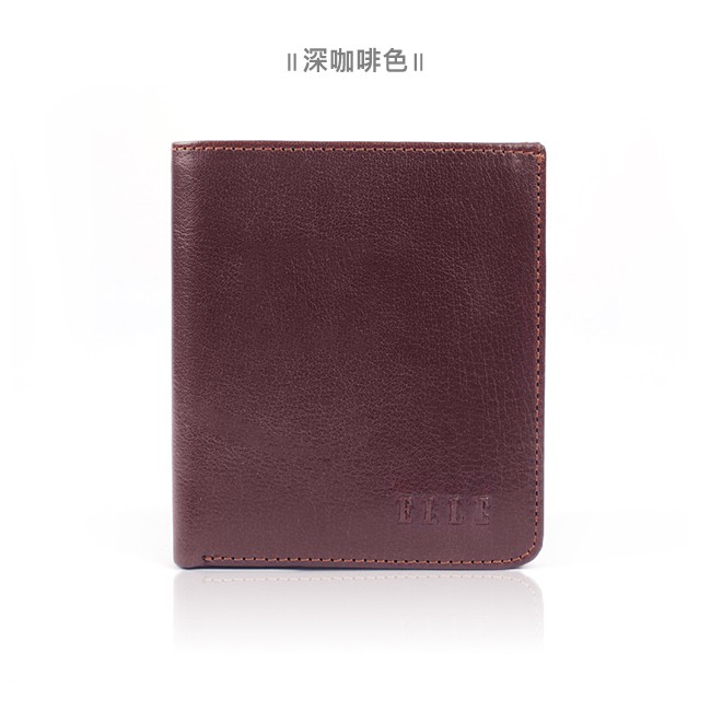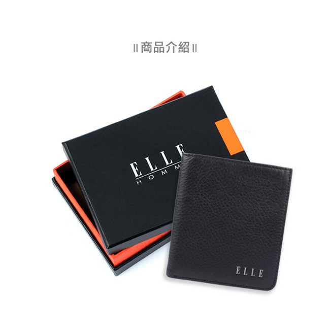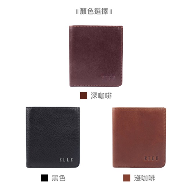 【ELLE HOMME】輕薄皮夾2面側翻1窗格ELLE荔紋壓紋牛皮短夾/卡夾/皮夾/男夾(黑、深咖啡、淺咖啡色)_背包族