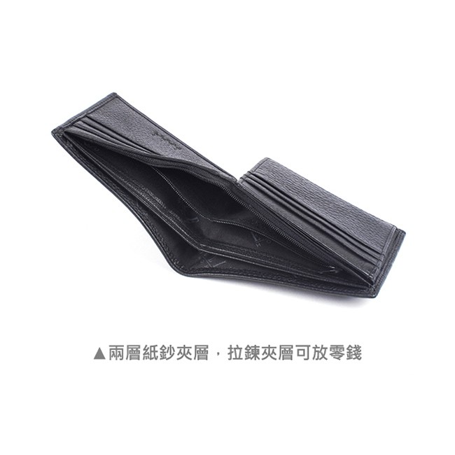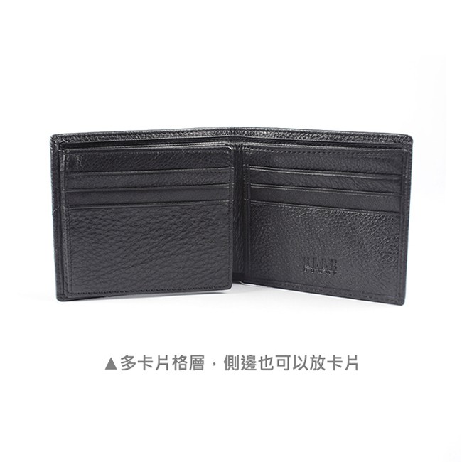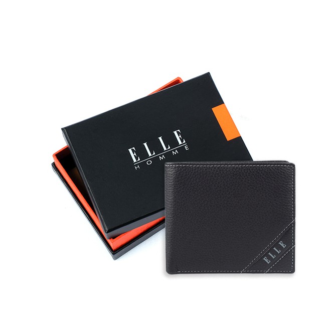 【ELLE HOMME】3面側翻3窗格ELLE斜角牛皮短夾/皮夾/男夾(黑色)_背包族