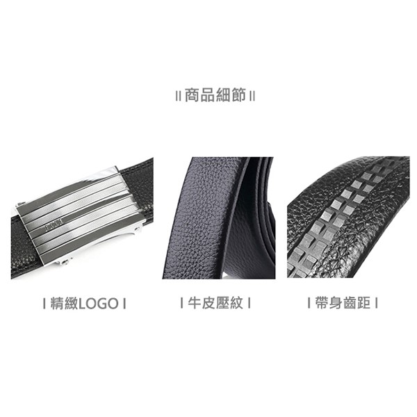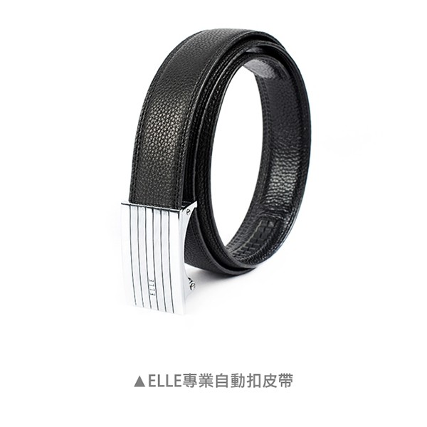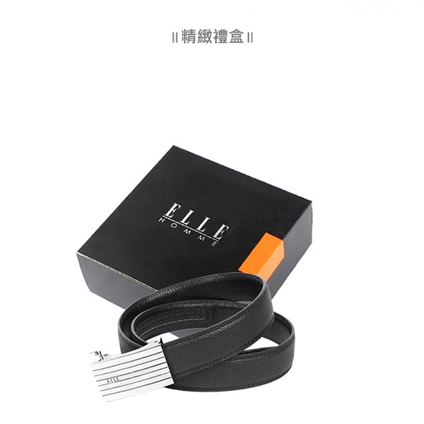 【ELLE HOMME】品牌自動扣皮帶/男士皮帶(黑)-平行寬條紋_背包族