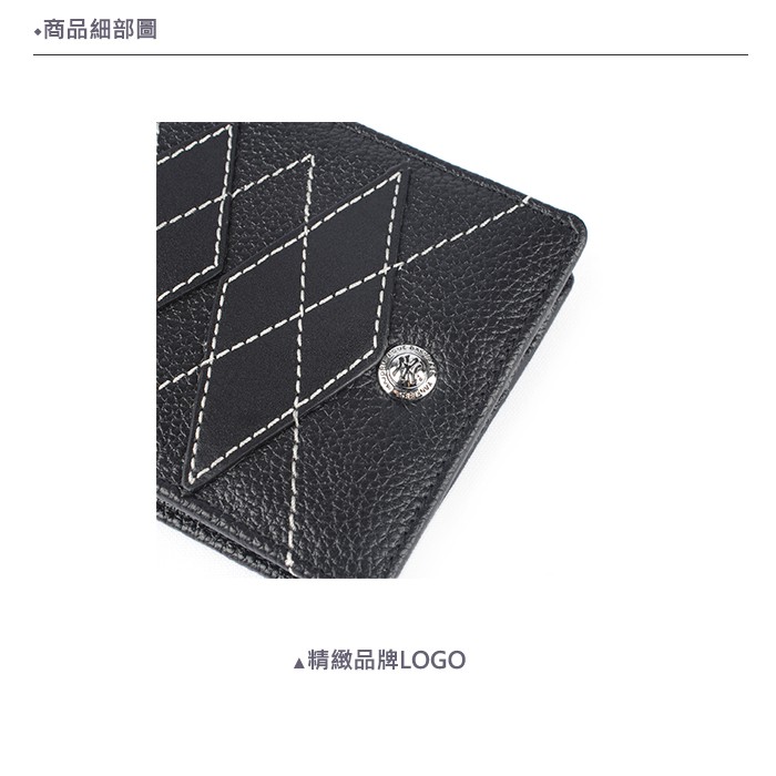 MLB 美國大聯盟 洋基 菱格紋 3卡零錢袋 短夾 黑色_背包族