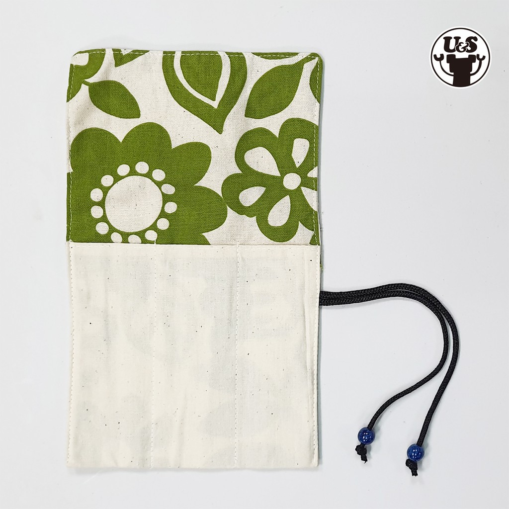 U&S 叔叔與妹妹 餐具收納袋 可裝三件餐具 大綠花圖案