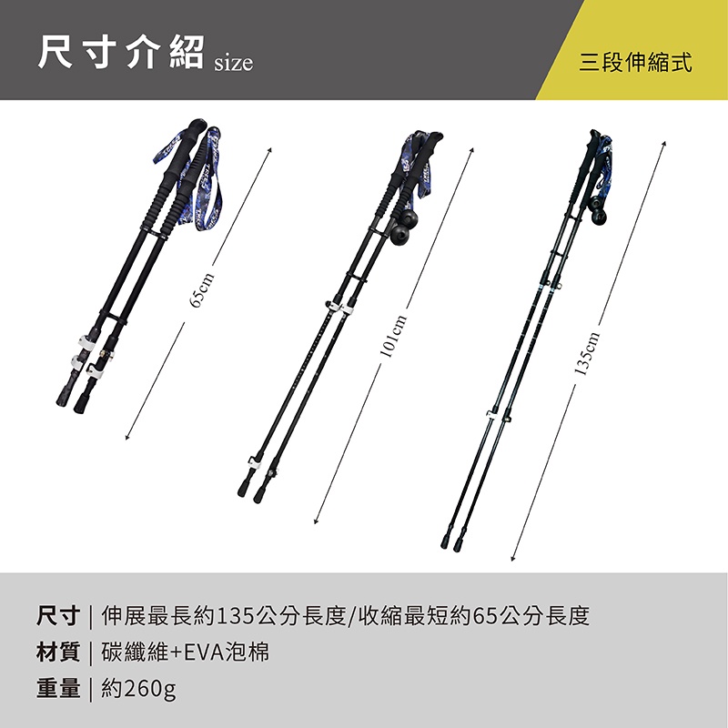 Treewalker 輕量碳纖登山杖(成對) 65-135cm 1Set組 x 1【家樂福】