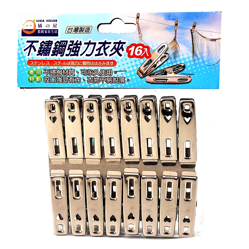 MIKA HOUSE 不鏽鋼強力衣夾 16PC個 x 1【家樂福】