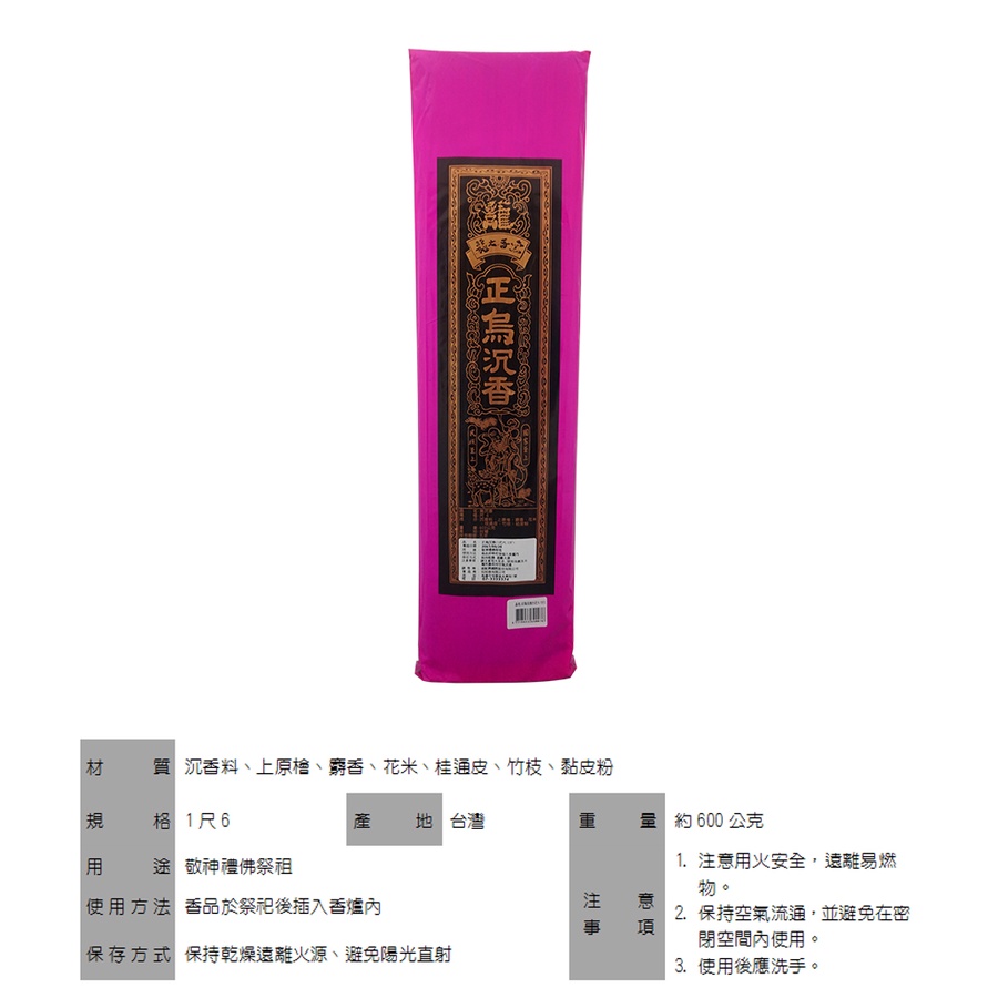 龍之香窯 正烏沉香(1尺六-1斤) 1包【家樂福】