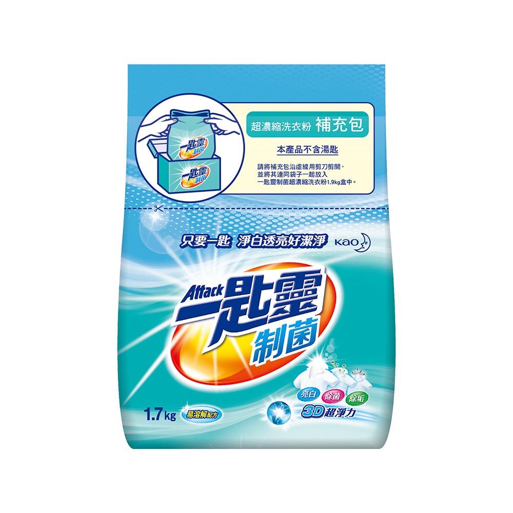 Attack一匙靈 制菌超濃縮洗衣粉補充包 1.7kg【家樂福】