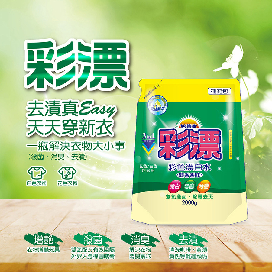 妙管家彩色漂白水 -麝香 補充包2000g克 x 6包[箱購] 【家樂福】