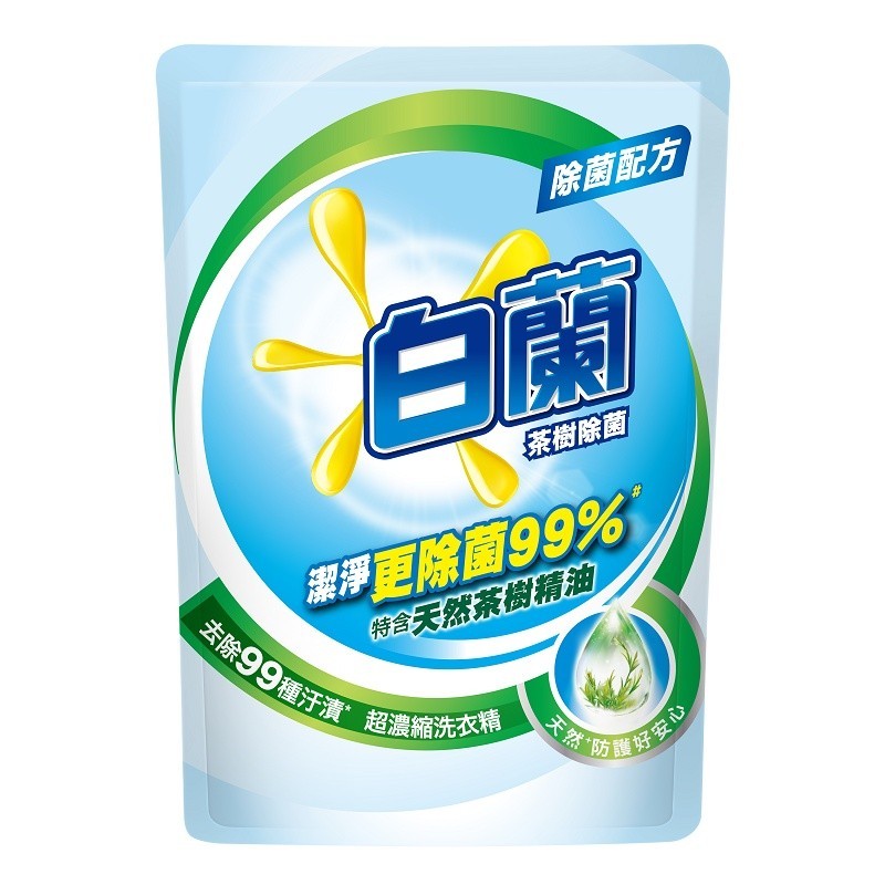 白蘭 茶樹除菌超濃縮洗衣精補充包 1.6kg【家樂福】【新舊包裝隨機出貨】