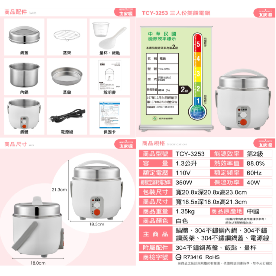 大家源TCY-3253三人份美饌電鍋1Set台【家樂福】