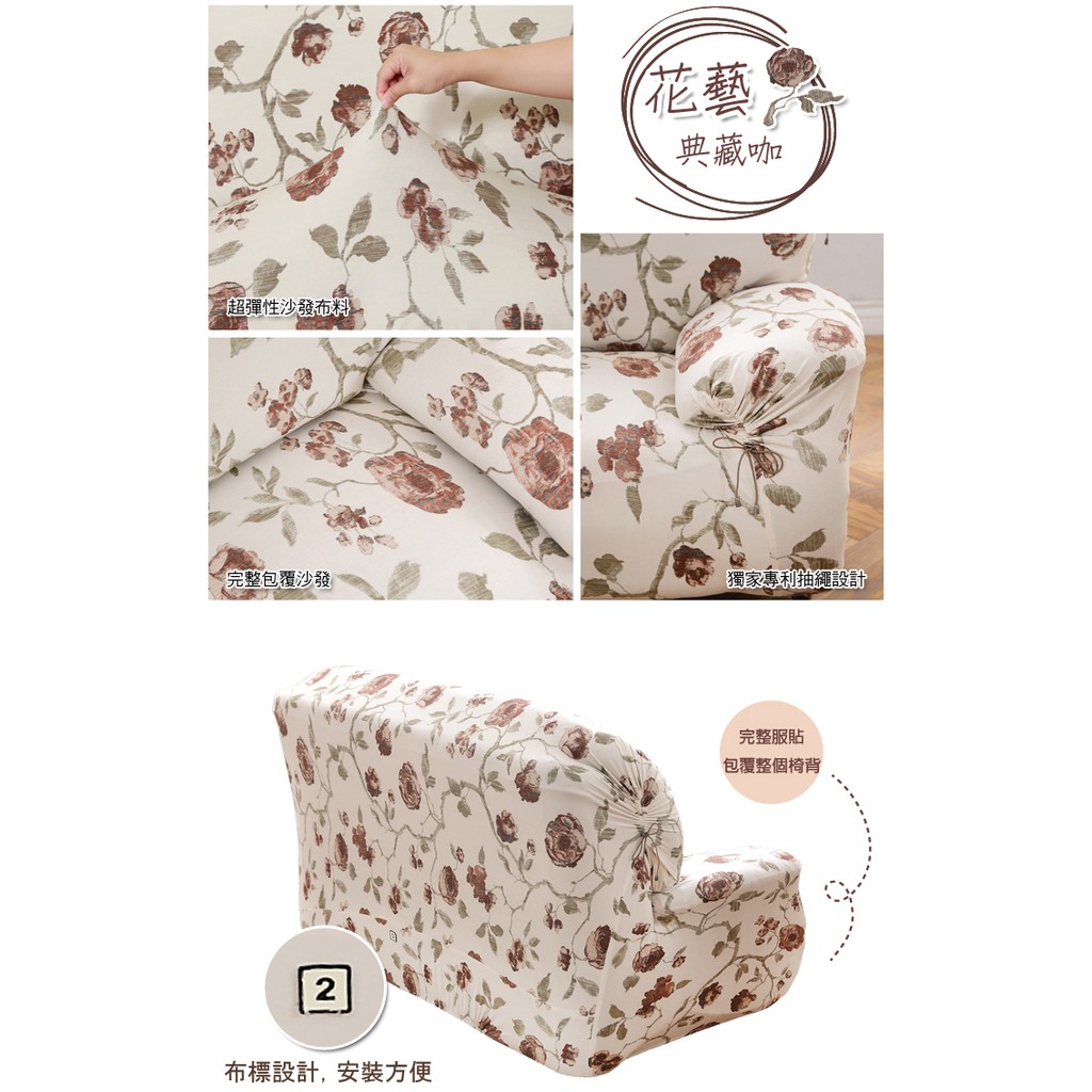 【格藍傢飾】加大版 抽繩專利沙發套-典藏花藝 高品質 親膚透氣 沙發罩 沙發布套 彈力
