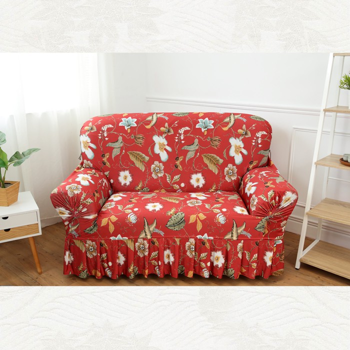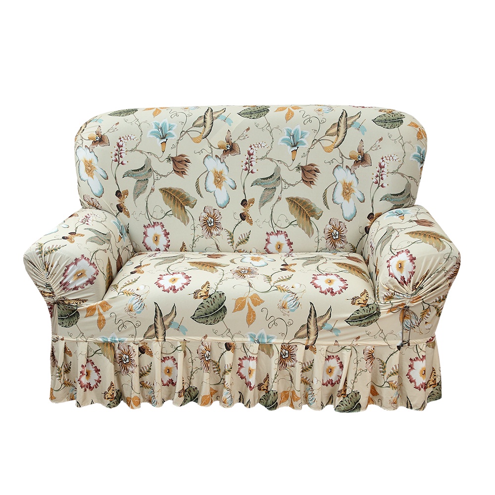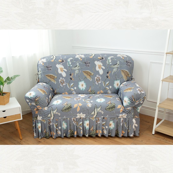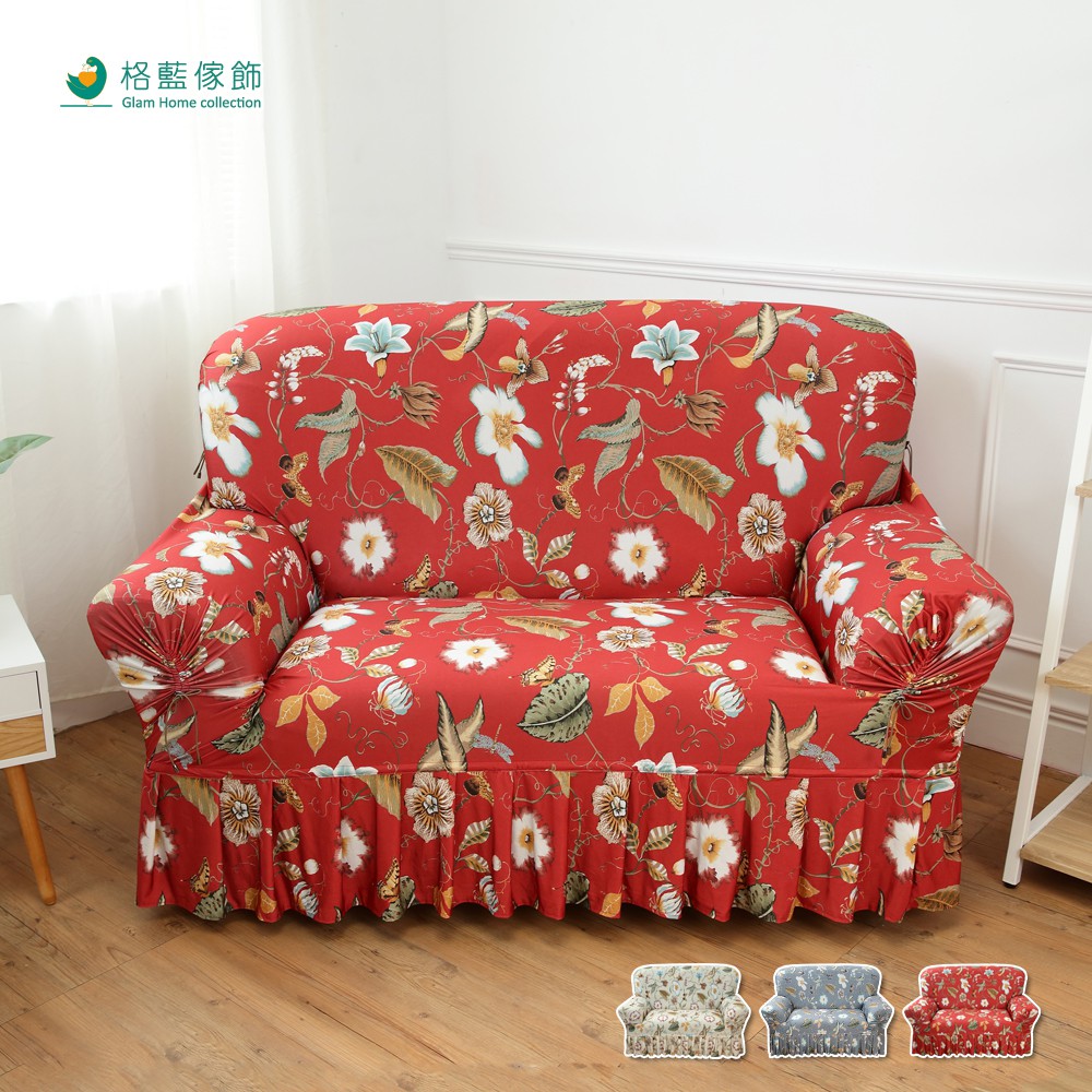 【格藍傢飾】涼感沙發套-迷蝶香 裙襬 抽繩專利 加大版 高品質 親膚透氣 冰絲沙發罩 沙發布套 彈力