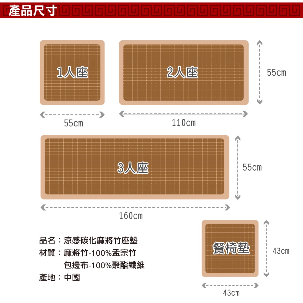 【格藍傢飾】碳化麻將竹坐墊(隨機出貨) 涼坐墊 沙發坐墊 涼墊 孟宗竹 麻將坐墊