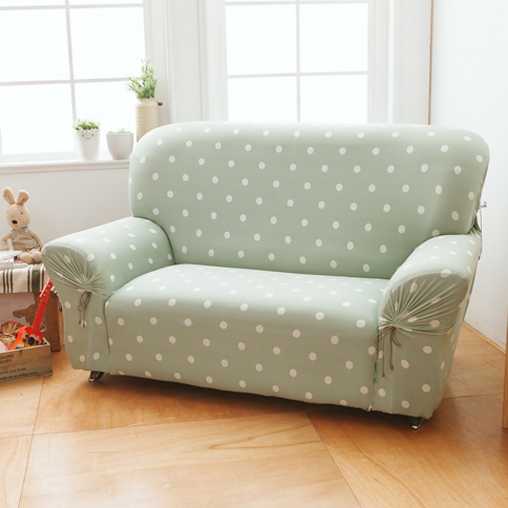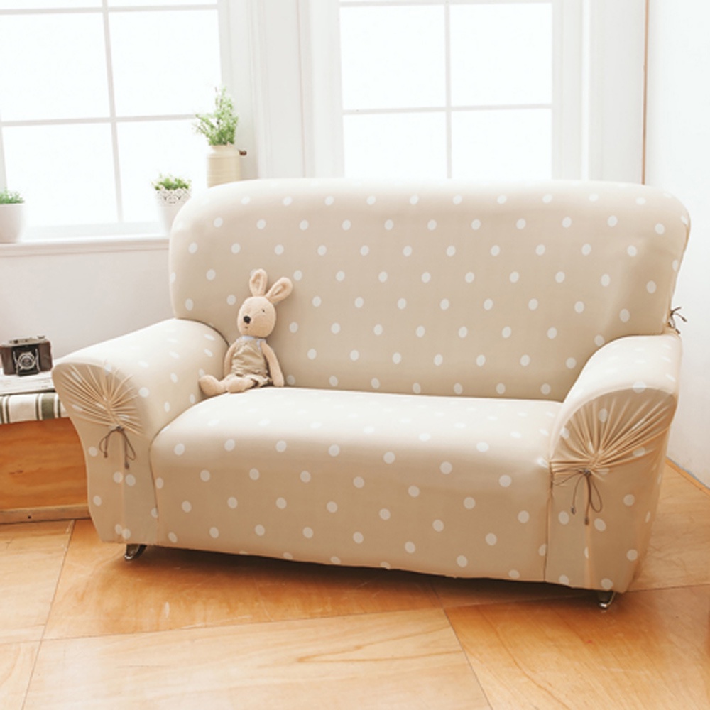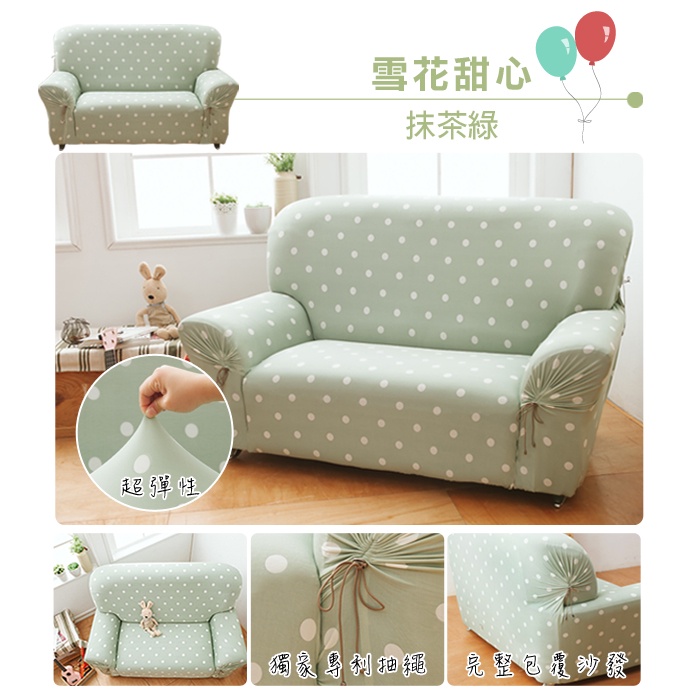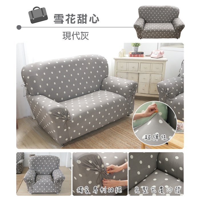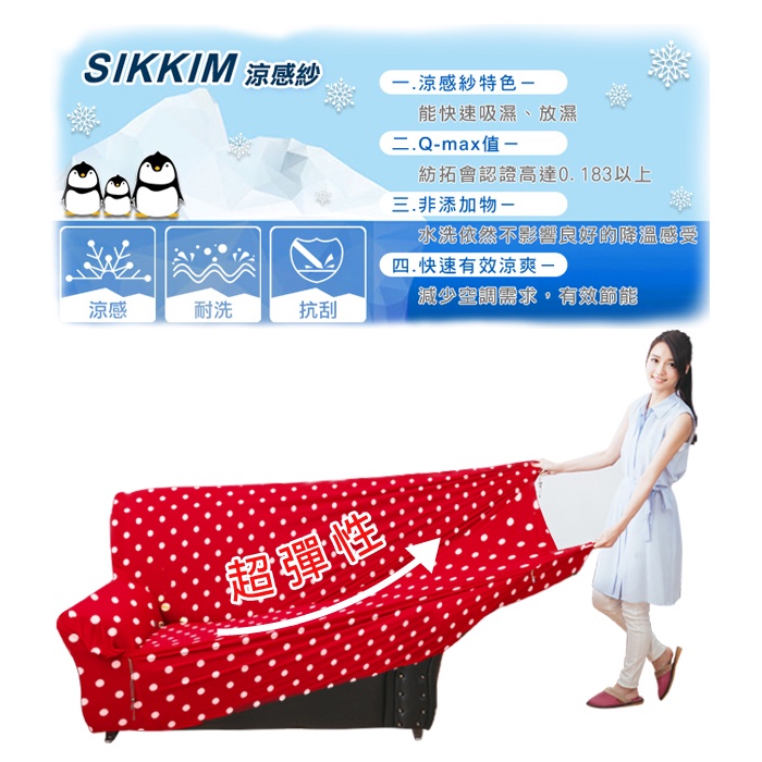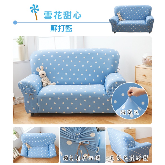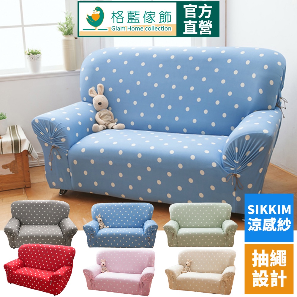 【格藍傢飾】涼感沙發套-雪花甜心 抽繩專利 加大版 高品質 親膚透氣 冰絲沙發罩 沙發布套 彈力