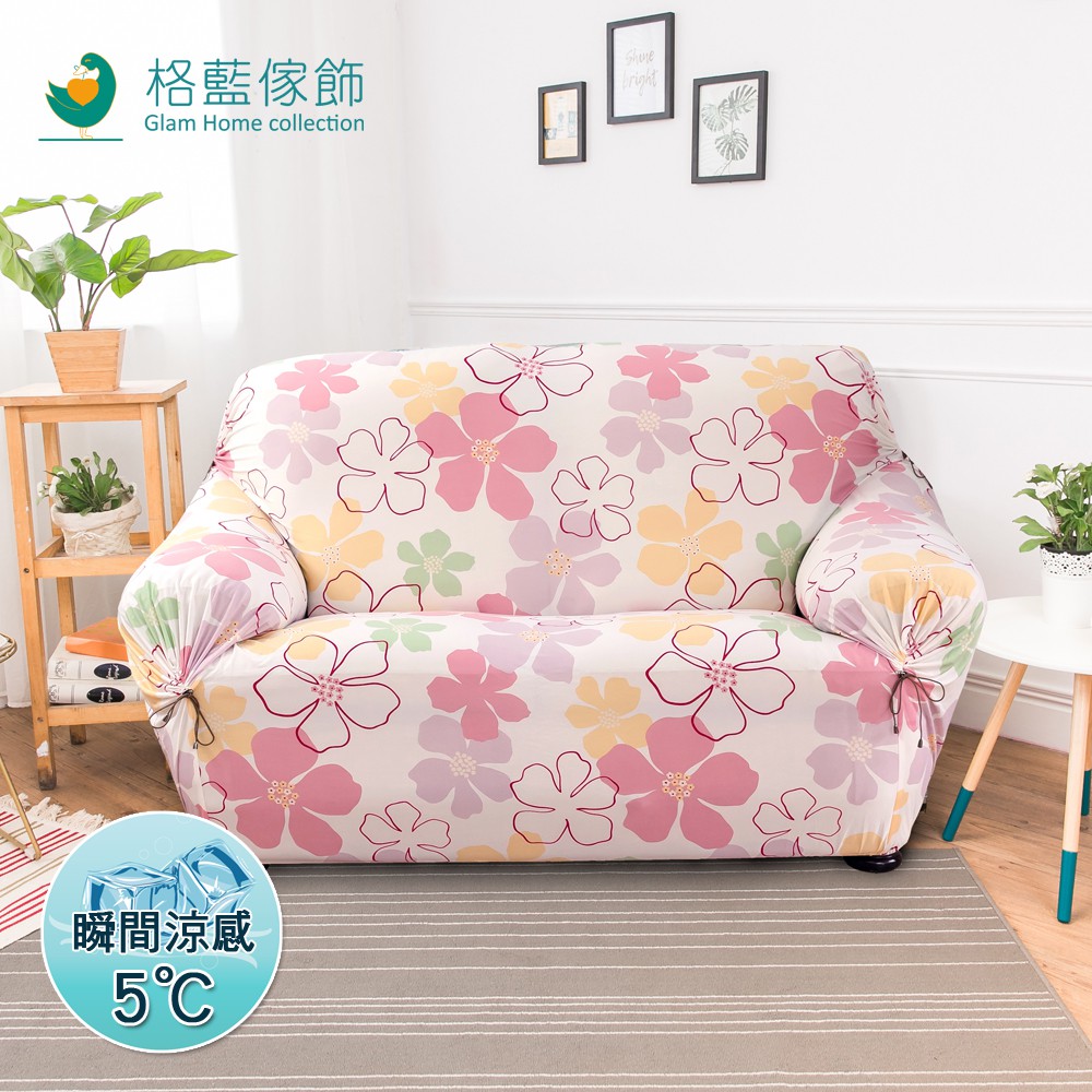 【格藍傢飾】涼感沙發套-綺香 抽繩專利 加大版 高品質 親膚透氣 冰絲沙發罩 沙發布套 彈力