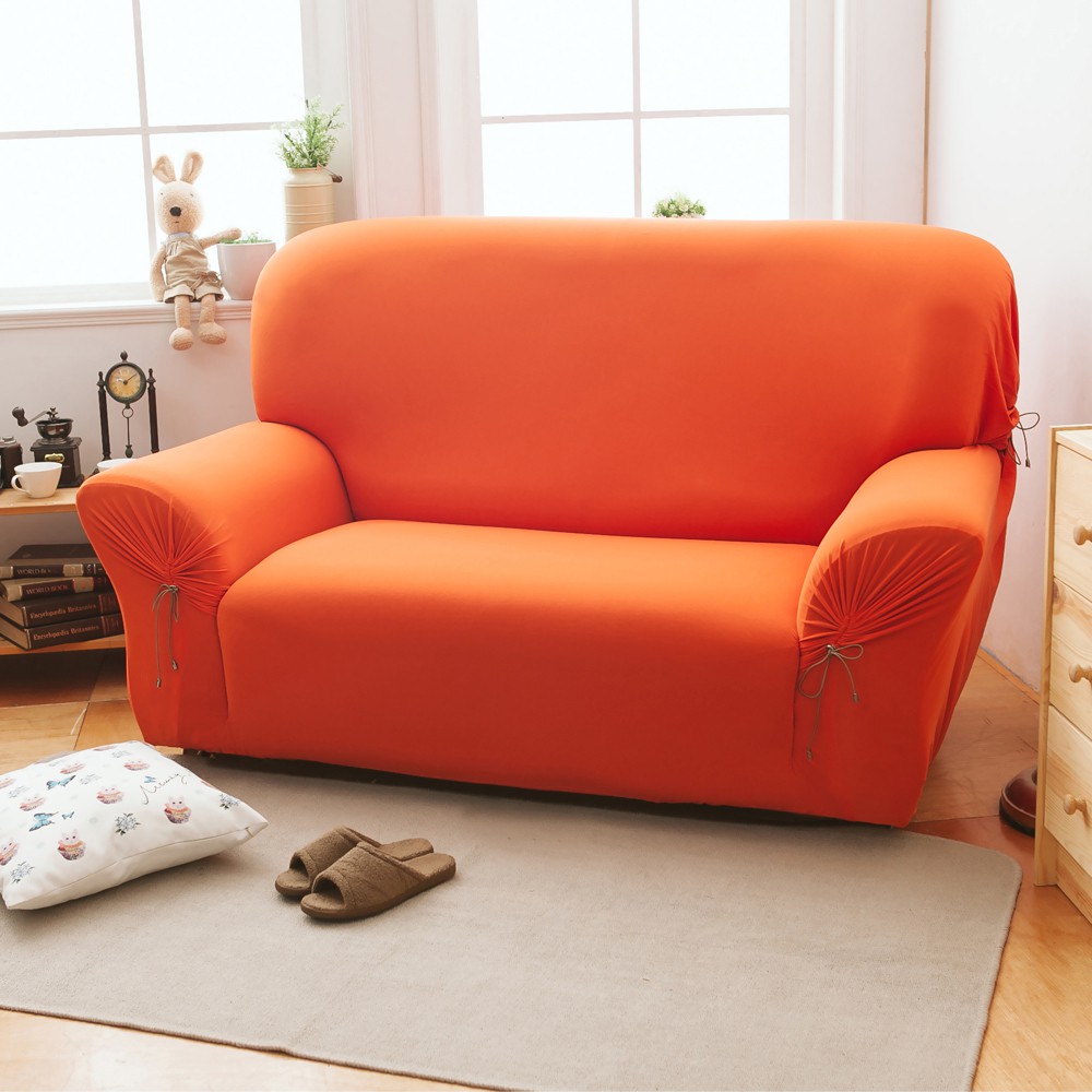 【格藍傢飾】加大版 抽繩專利沙發套-繽紛樂南瓜橘 高品質 親膚透氣 沙發罩 沙發布套 彈力 素色