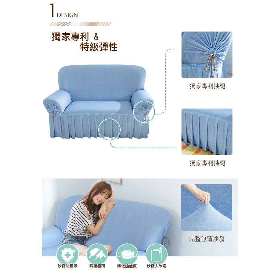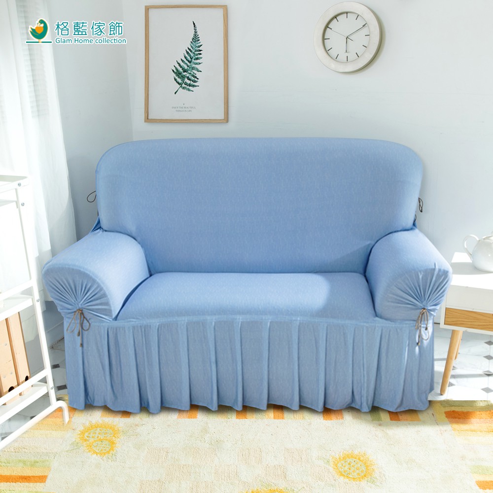 【格藍傢飾】涼感沙發套-夏羽 裙襬 抽繩專利 加大版 高品質 親膚透氣 冰絲沙發罩 沙發布套 彈力