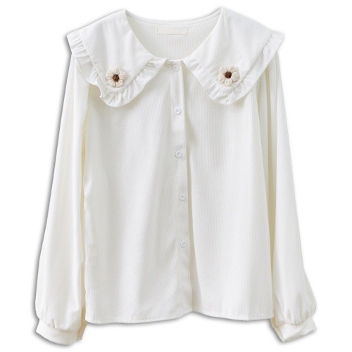 BAi白媽媽 毛線小花朵娃娃領燈芯絨襯衫-台灣現貨 隔日到貨【331040】