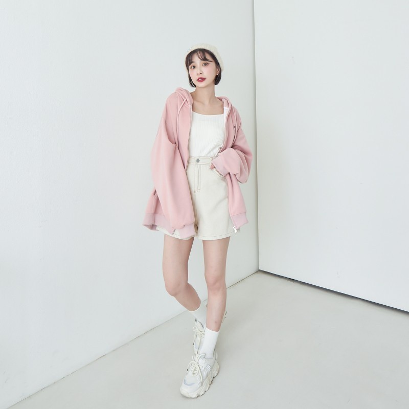 BAi白媽媽 小單字寬鬆拉鍊抽繩連帽外套-台灣現貨 隔日到貨【330980】