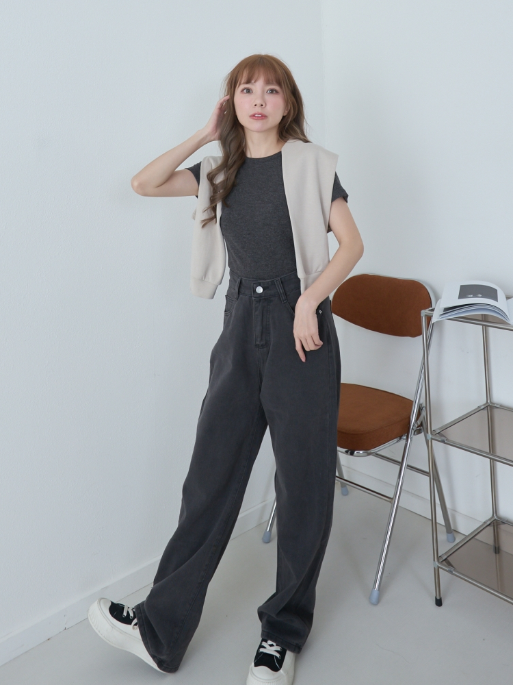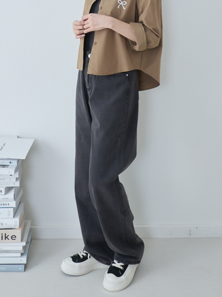 BAi白媽媽 高腰牛仔褲/單釦斜紋直筒褲S-XXL號-台灣現貨 隔日到貨【330962】