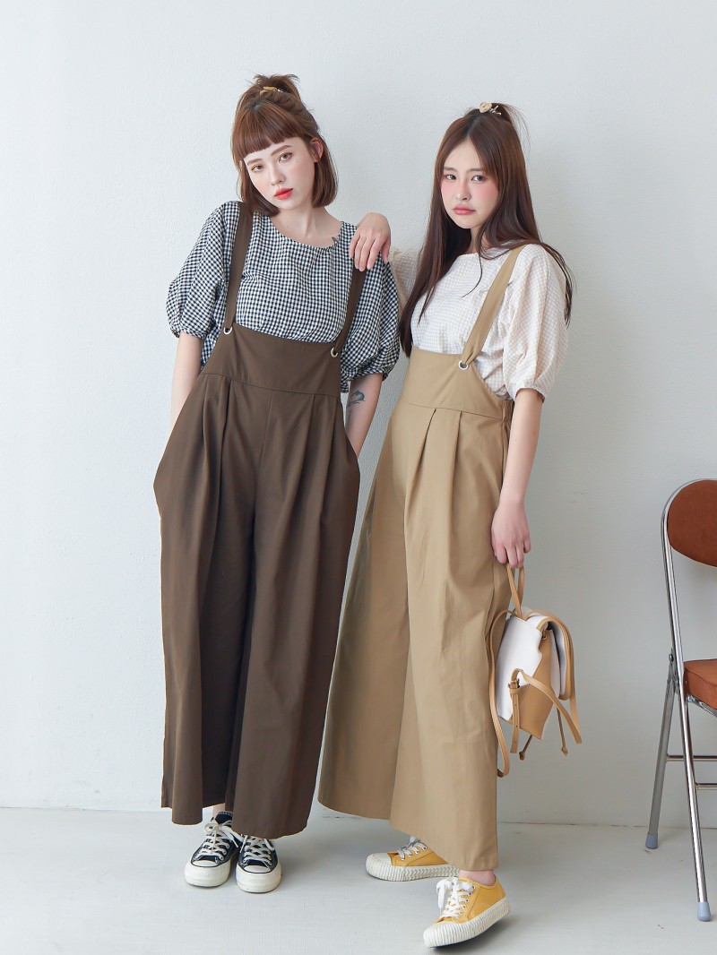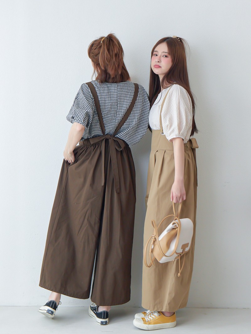 BAi白媽媽 吊帶長褲/後綁帶鬆緊打摺吊帶寬褲-台灣現貨 隔日到貨【340133】