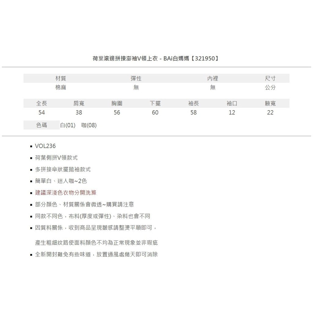 BAi白媽媽 荷葉滾邊拼接澎袖V領上衣-台灣現貨 隔日到貨【321950】