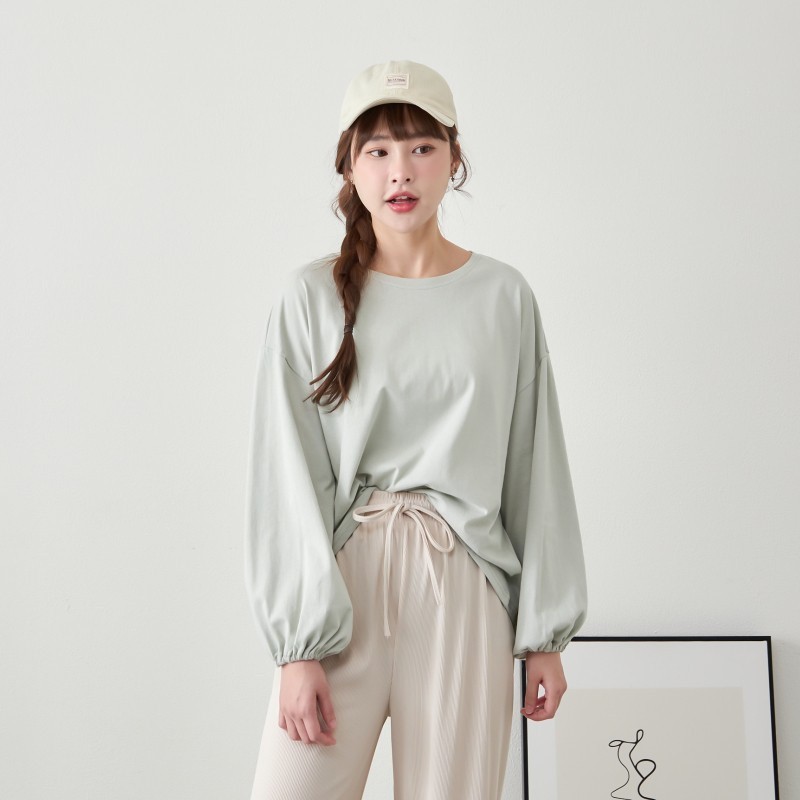 BAi白媽媽 純色縮口澎袖寬版落肩T恤-台灣現貨 隔日到貨【321948】