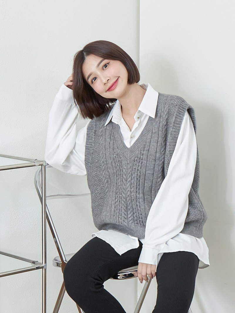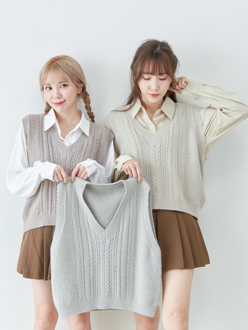 BAi白媽媽 針織背心/寬鬆V領螺旋織紋無袖外搭-台灣現貨 隔日到貨【340914】