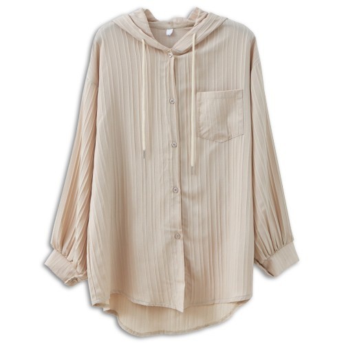 BAi白媽媽 寬鬆直條壓紋連帽襯衫外套-台灣現貨 隔日到貨【330771】
