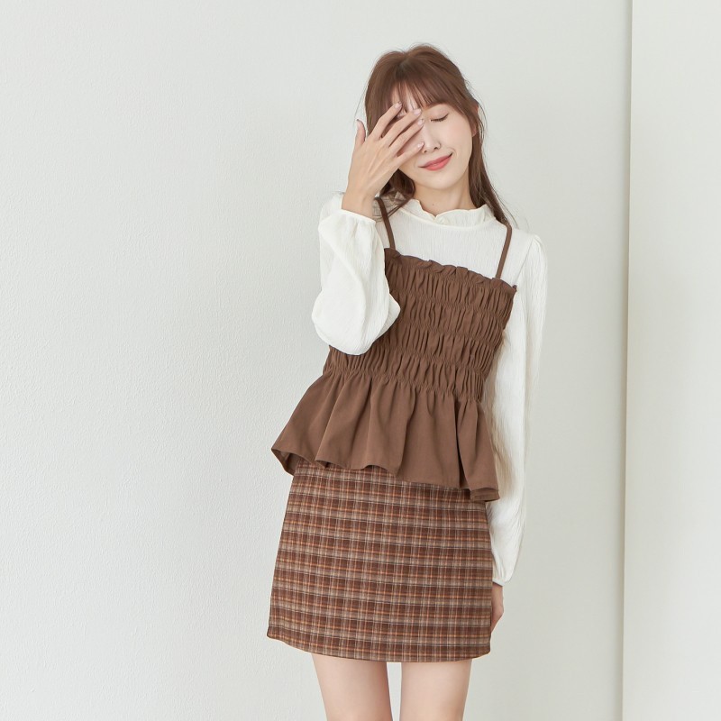 BAi白媽媽 復古格紋磨毛薄呢料高腰短裙S-M號-台灣現貨 隔日到貨【331009】