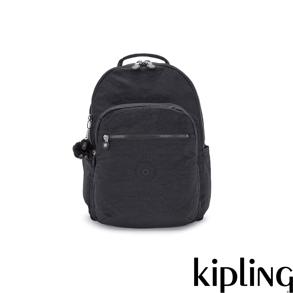 Kipling 『首爾包』曜岩黑品牌經典圓標機能手提後背包-SEOUL