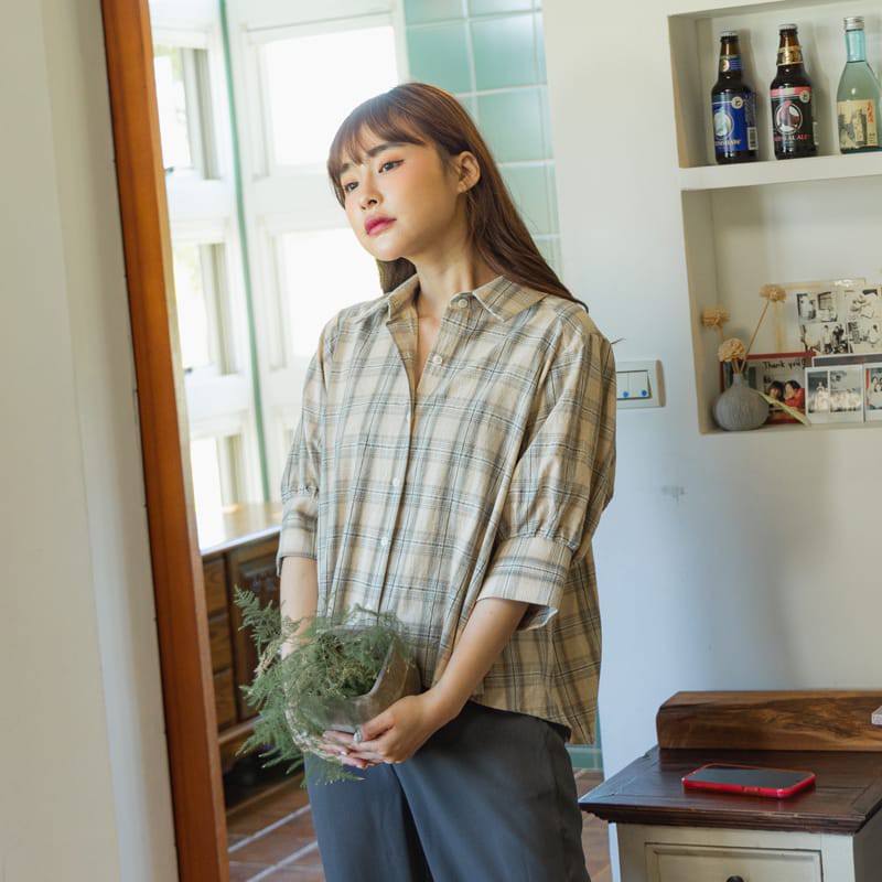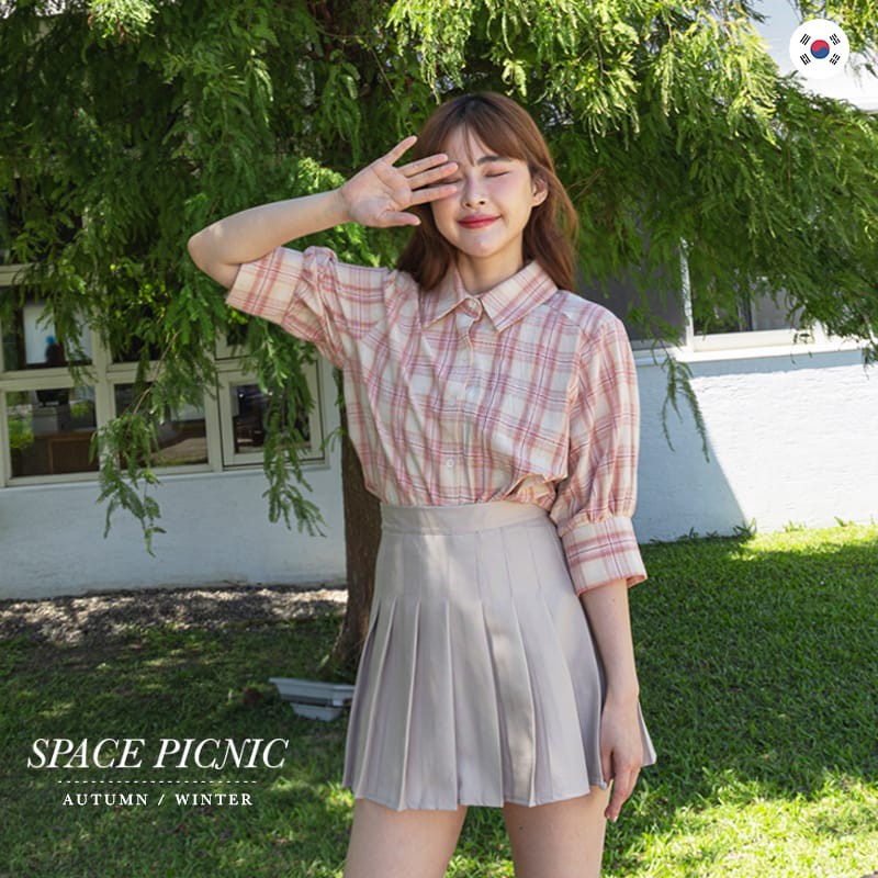 Space Picnic|正韓-格紋五分澎袖襯衫-2色【K21084003】