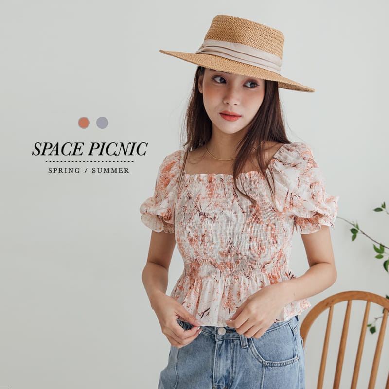 Space Picnic|不規則噴墨彈性兩穿短版上衣【C21052109】