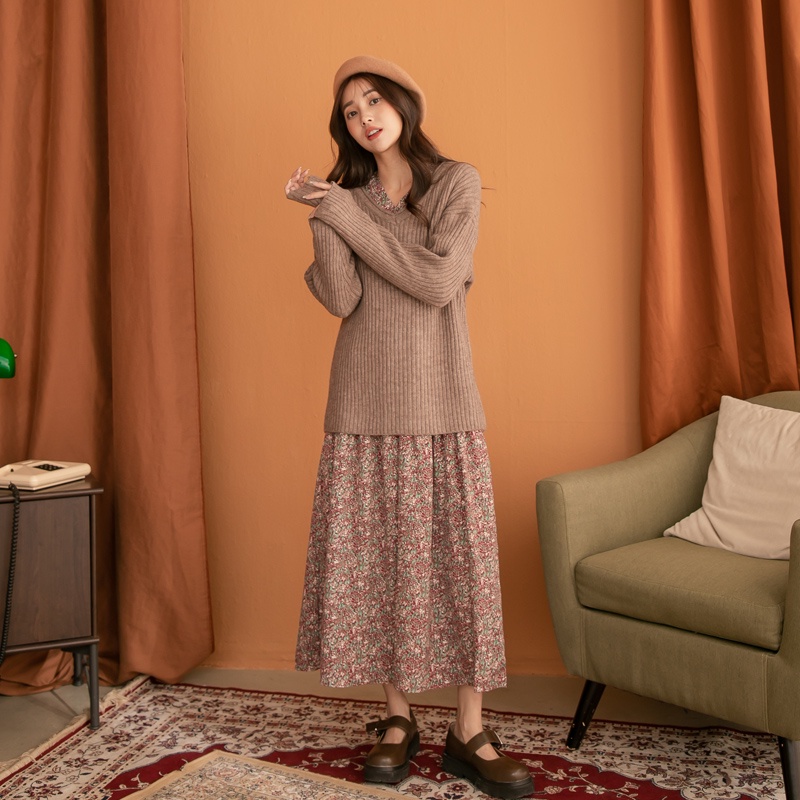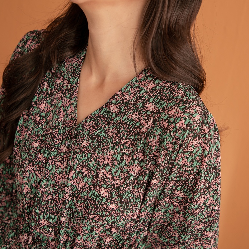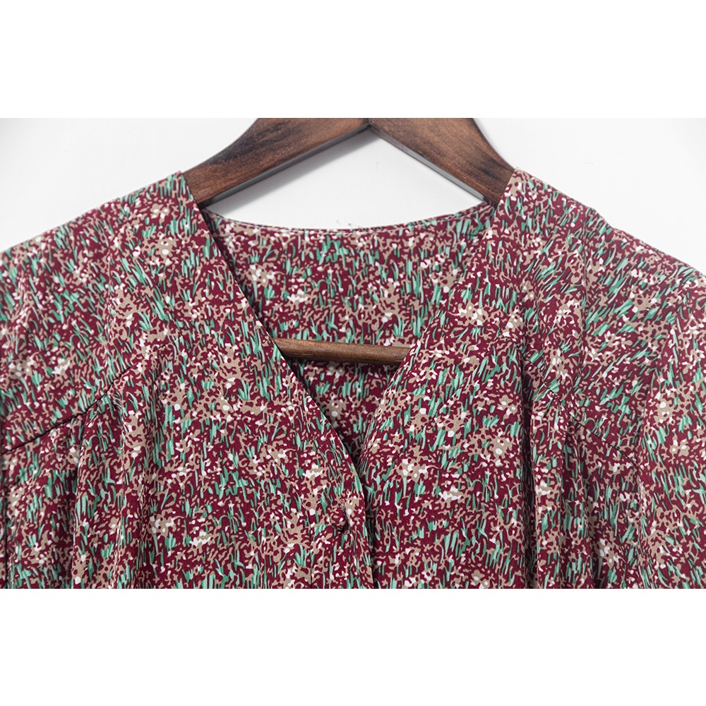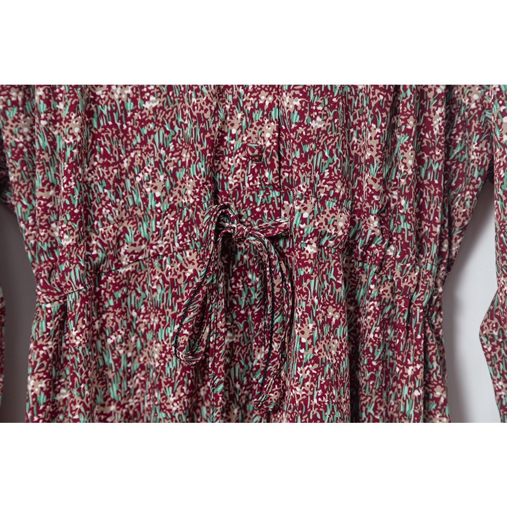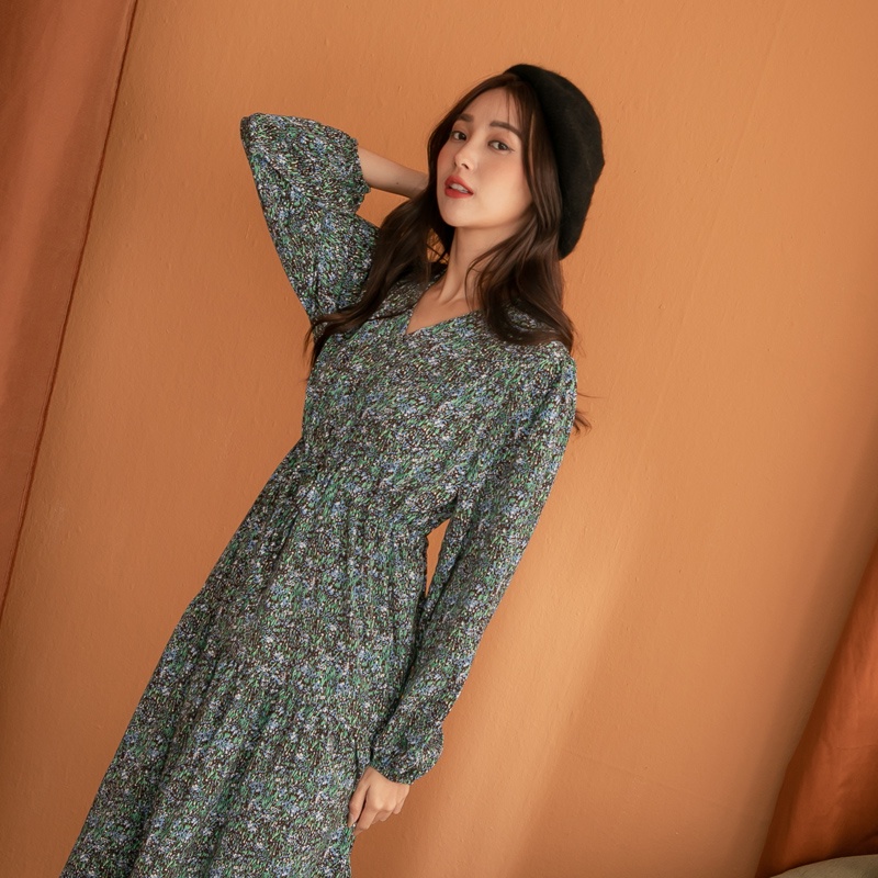 Space Picnic|V領腰抽繩花洋裝-3色【C21102041】