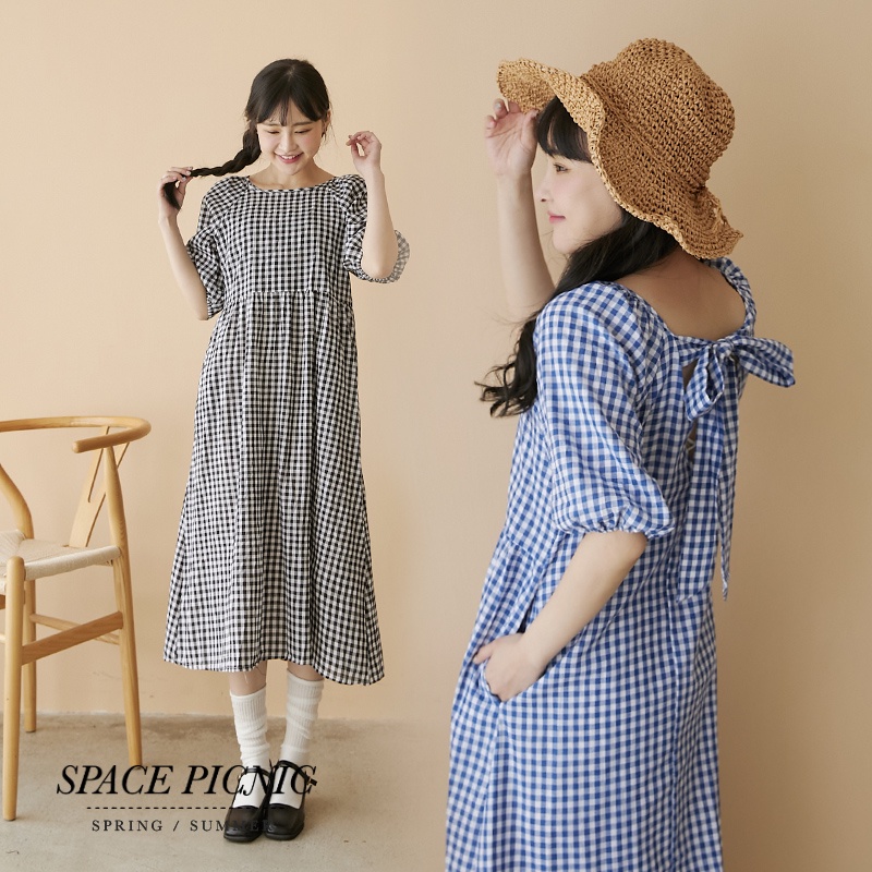 Space Picnic|背綁帶格紋洋裝-2色【C22041025】