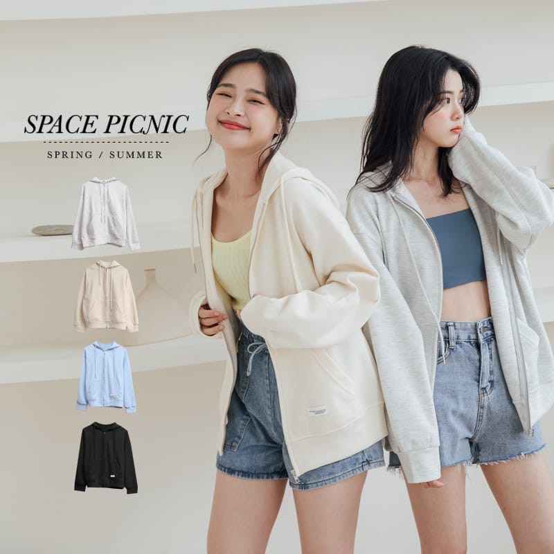 Space Picnic|素面小標籤設計連帽外套【C21042043】