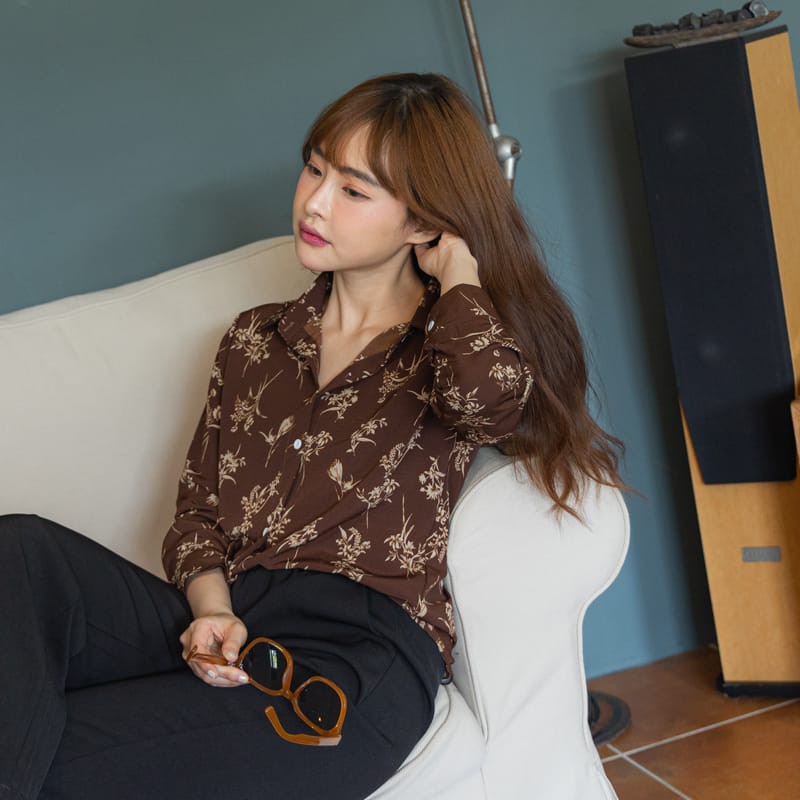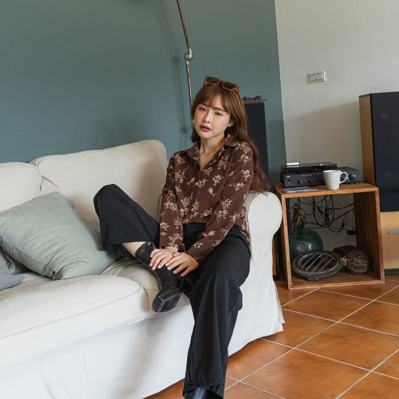 Space Picnic|單色花草長袖襯衫-2色【C21082082】