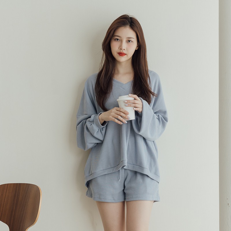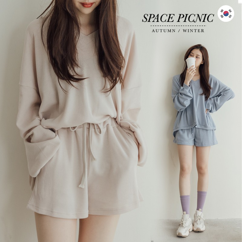 Space Picnic|正韓-兩件式-V領上衣+短褲-3色【K21093005】