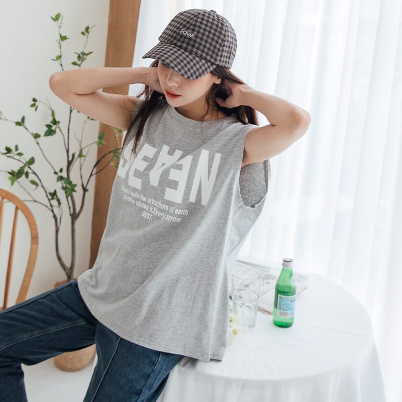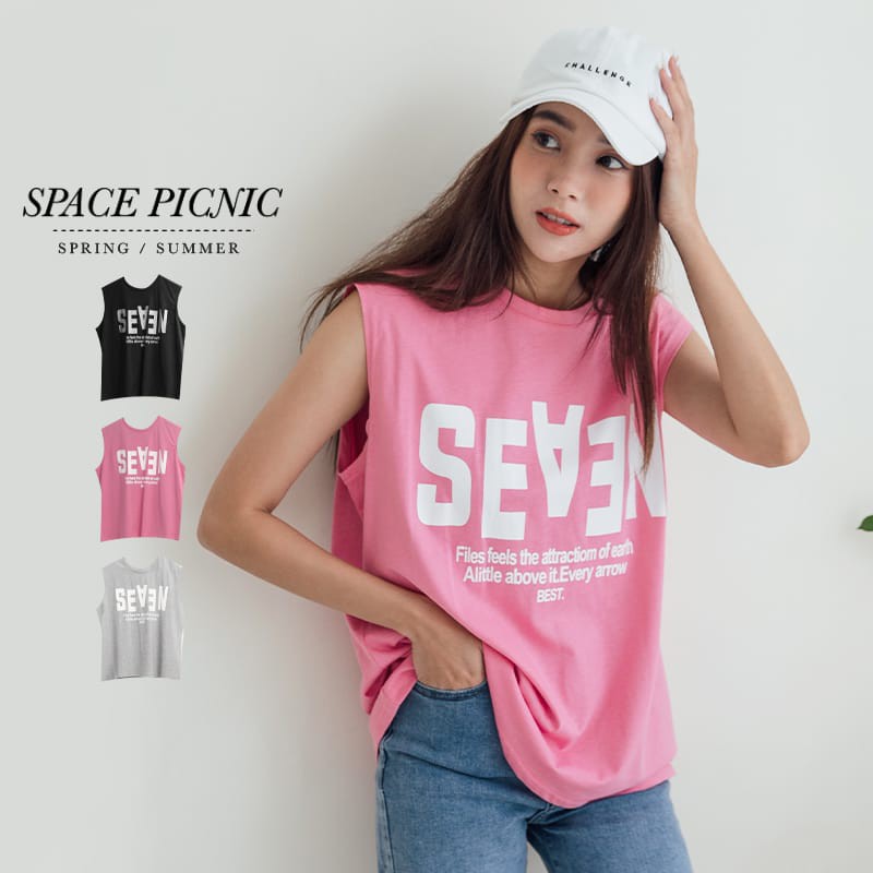 Space Picnic|字母落肩無袖上衣【C21052051】