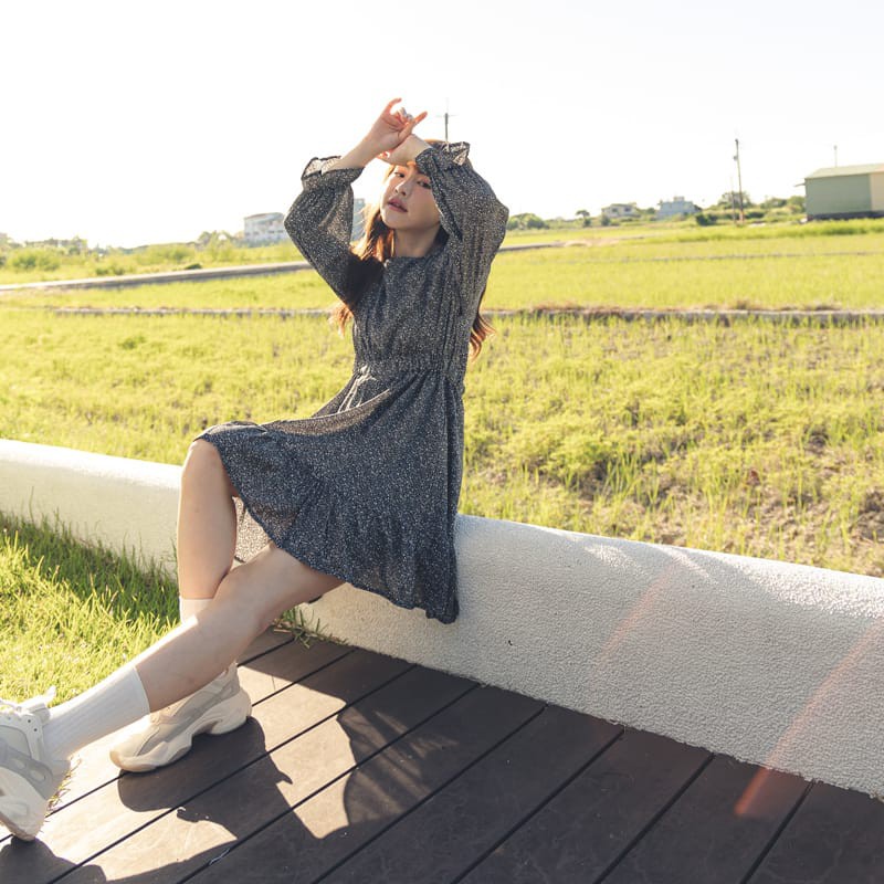 Space Picnic|小白花雪紡洋裝-2色【C21082058】