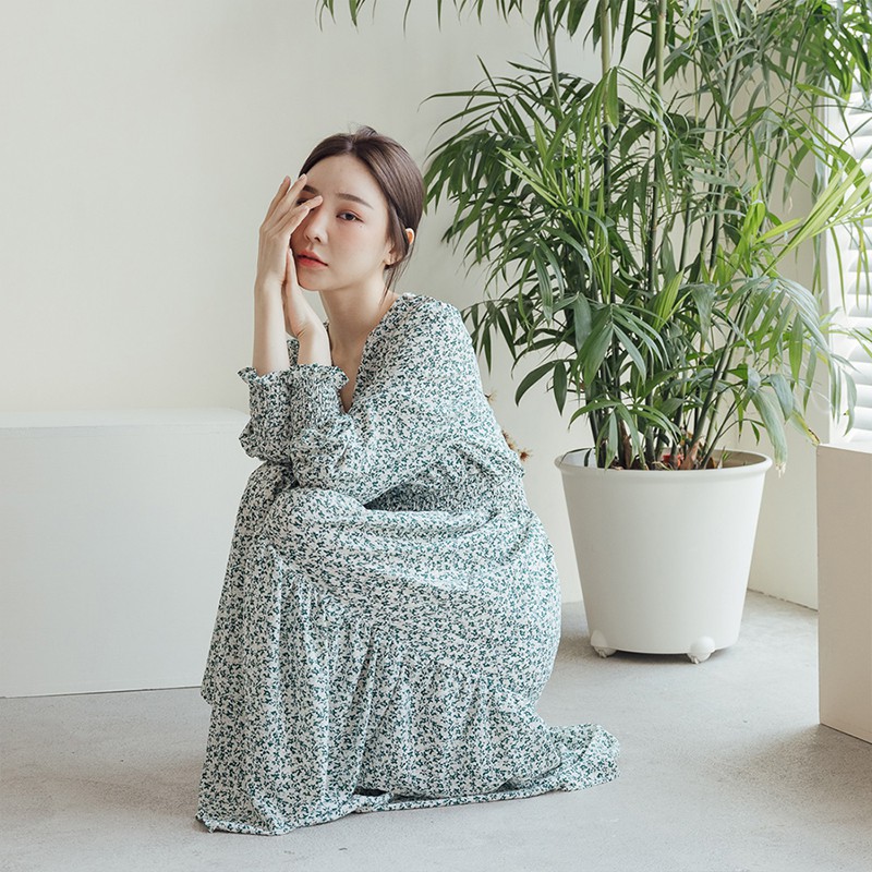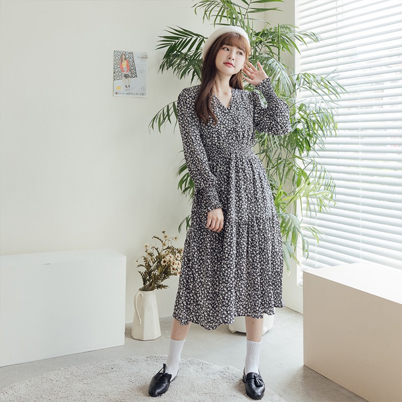 Space Picnic|小花V領長袖洋裝-3色【C21073066】
