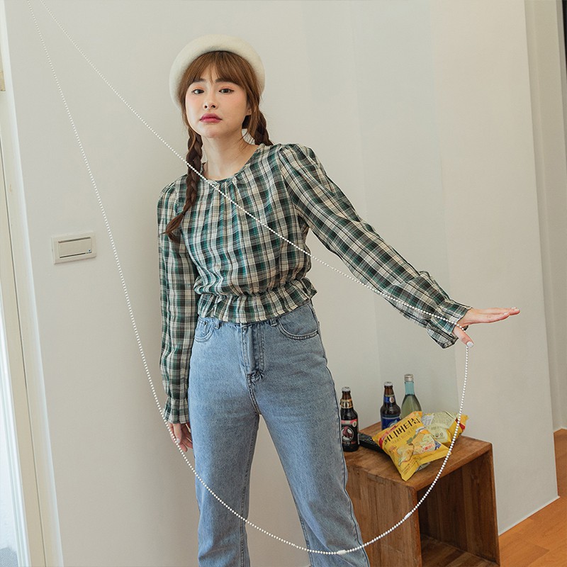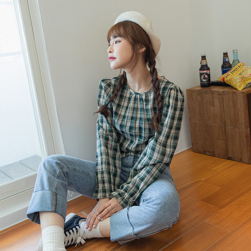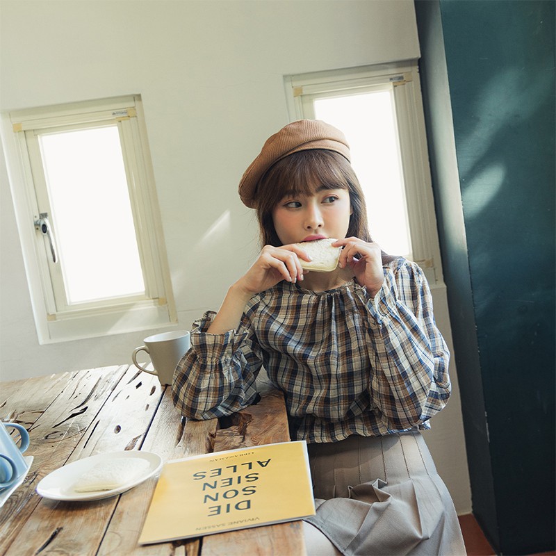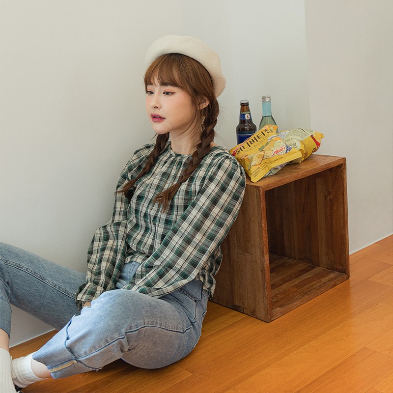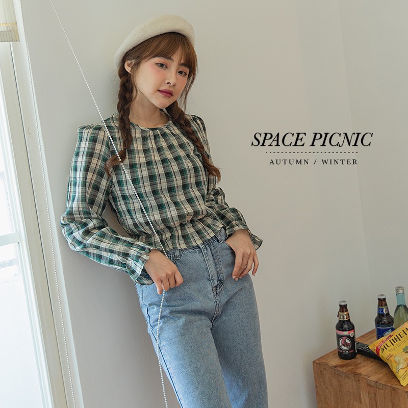 Space Picnic|格紋荷葉擺上衣-2色【C21082042】